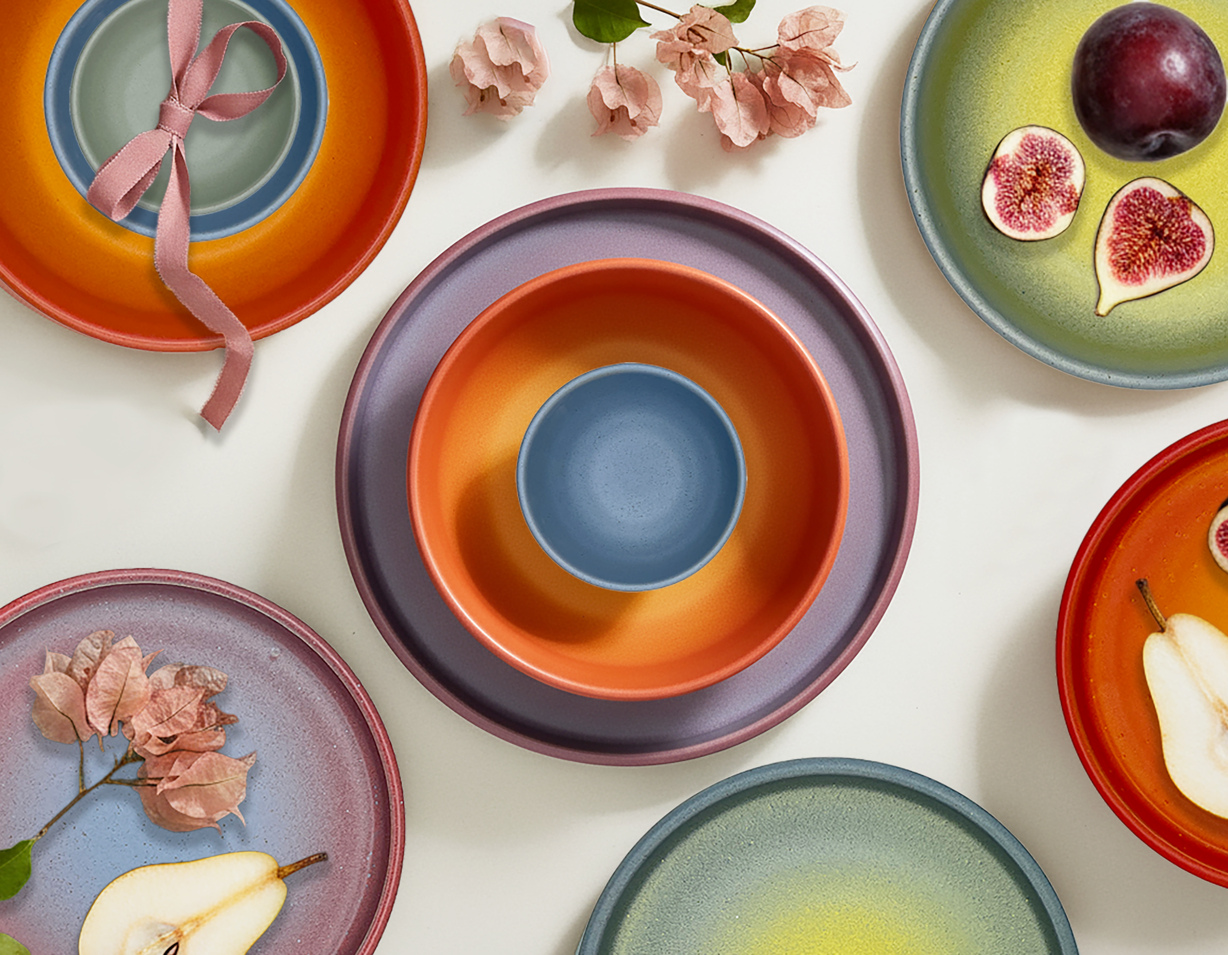 Glazed in our color Siesta — a soft blue that fades into a warm, sunlit yellow. Inspired by slow summer afternoons.